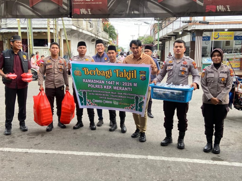 Meranti,- Polres Kepulauan Meranti melalui Bagian SDM melaksanakan Pembagian Takjil Ramadhan Kepada Masyarakat di Penyeberangan Kempang Om Rin Jalan Tebing Tinggi Oleh Personil Polres Kepulauan Meranti Selasa (3/3/2026) Sore.