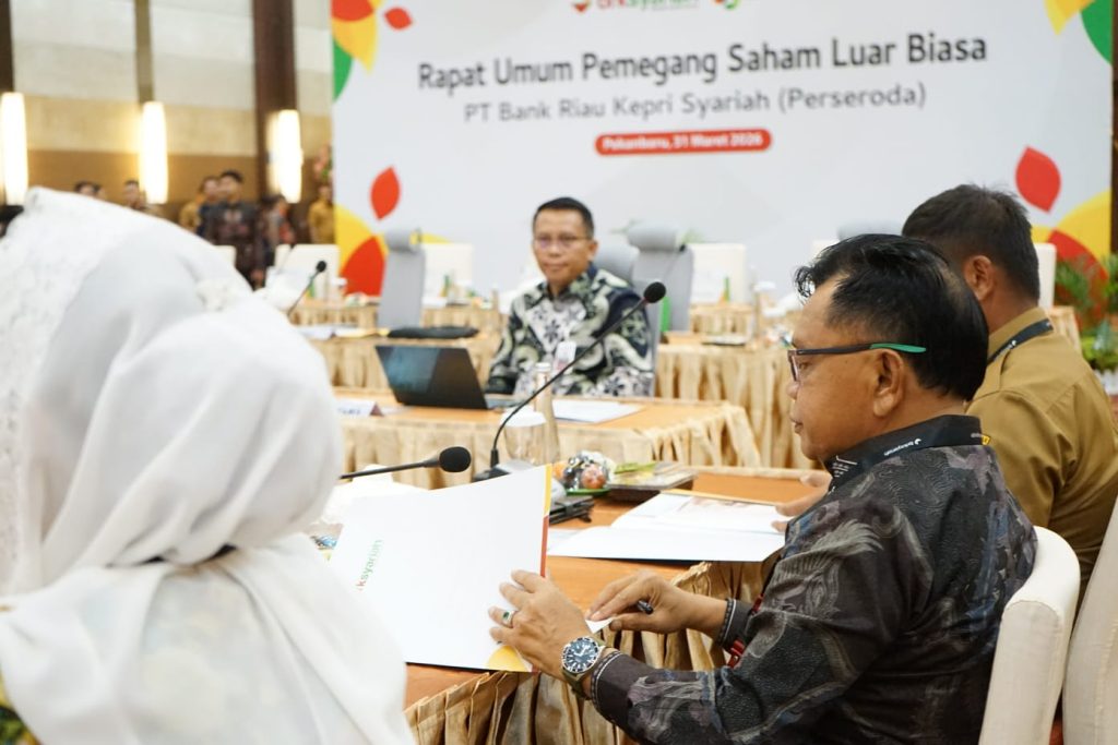 Riauviral.com. PEKANBARU – Bupati Kepulauan Meranti, AKBP (Purn) H. Asmar, menghadiri Rapat Umum Pemegang Saham (RUPS) Bank Riau Kepri (BRK) Syariah yang digelar di Ballroom Gedung BRK Syariah, Jalan Jenderal Sudirman, Pekanbaru, Selasa (31/3/2026).
