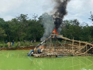 Kapolsek Kuantan Hilir Iptu Edi Winoto, S.H., M.H. menjelaskan, hasil pengecekan di lapangan ditemukan 9 (sembilan) unit rakit PETI yang berada di sungai dalam keadaan tidak beroperasi dan tidak diketahui siapa pemiliknya. Petugas kemudian melakukan pemusnahan terhadap rakit PETI tersebut dengan cara membakar mesin serta peralatan penambangan lainnya agar tidak dapat digunakan kembali.